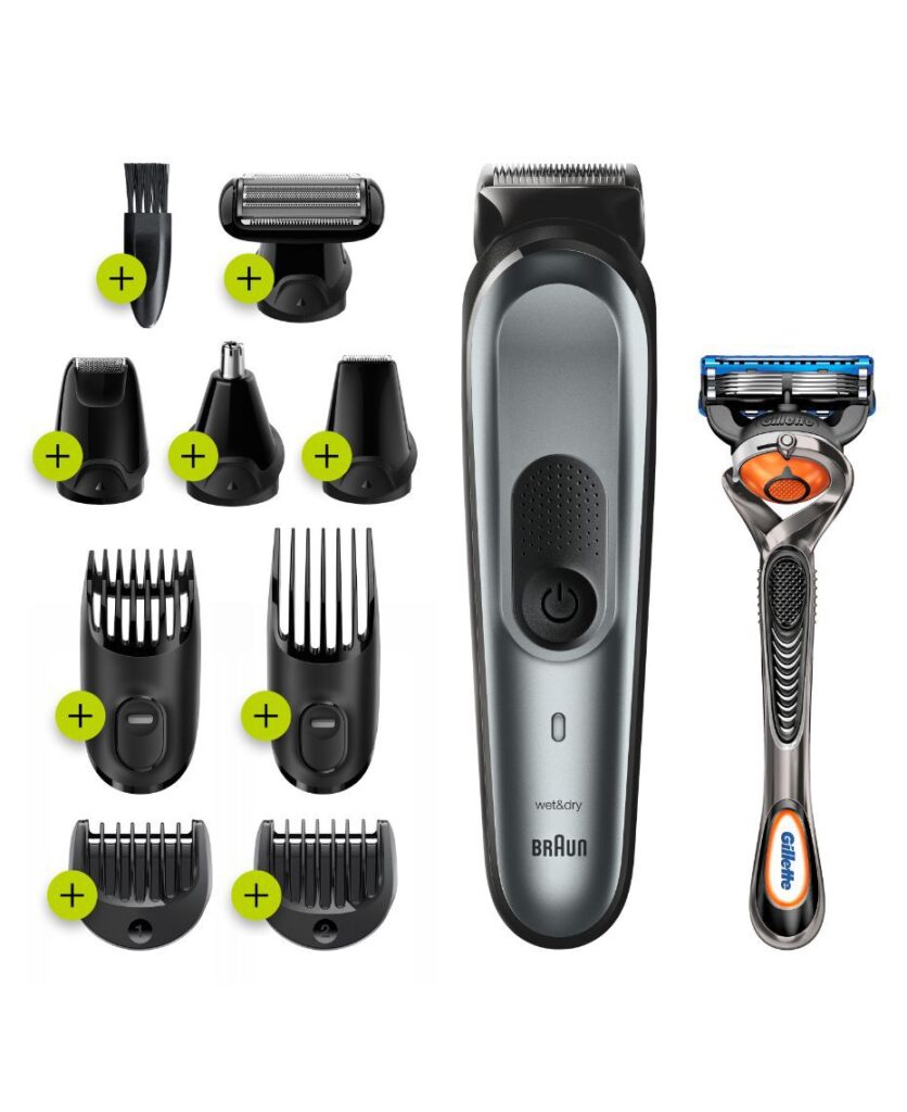 This rechargeable all-in-one wet and dry trimmer for men boasts unprecedented cutting performance for the beard, face, hair, body, ear, and nose trimming, using Gillette’s Fusion5 ProGlide razor for clean shaving. It features an AutoSensing motor that adapts to any beard type for an effortless trimming experience. The technology also ‘reads’ your beard 13 times each second and adjusts the power of the trimmer to its varying thickness for an efficient trim every time. It works on the body, beard and face, hair clipping, contour edging and detail trimming.