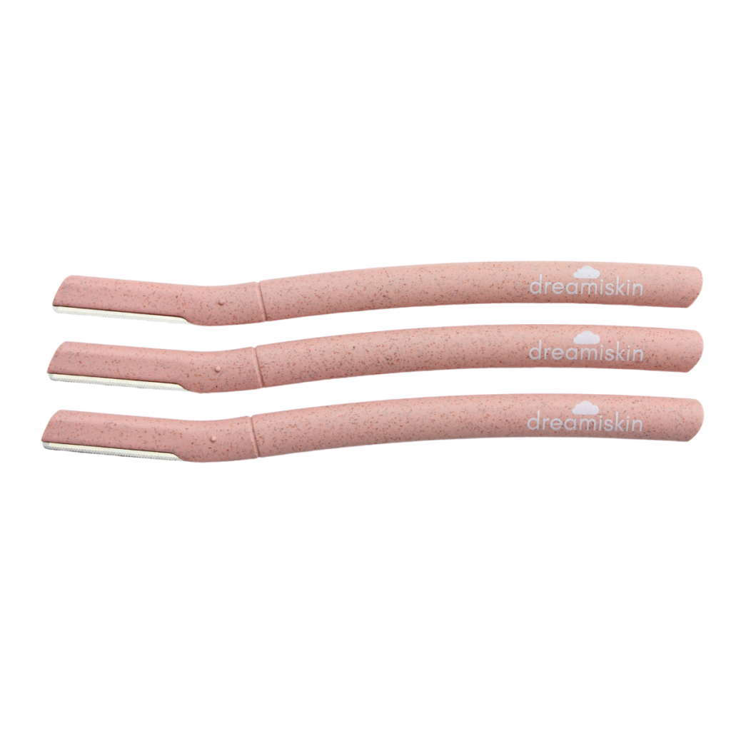 In salon, the treatment works to remove peach fuzz, dead, dry skin that causes uneven texture and lumps and bumps and reveal glowing, smooth skin, as well as enhance the benefits of your skincare regime. At home, it works the same way! The product itself uses a Japanese stainless-steel blade that gently whisks away anything that is causing your skin to look uneven and dull. it has an anti-slip handle made from biodegradable wheat strew material, so extra points for sustainability!