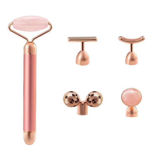 With five interchangeable heads, and vibrating technology to assist in relieving tension and boosting skin rejuvenation for a more radiant complexion, this vibrating rose quartzfacial roller assists in relieving facial tension and boosting skin rejuvenation. It helps to stimulate circulation a trigger collagen production, while calming inflammation, puffiness, redness, and dark circles. Regular use may help reduce the appearance of fine lines. For best results, store in the fridge – it offers the ultimate de-puffing beauty salon style facial.