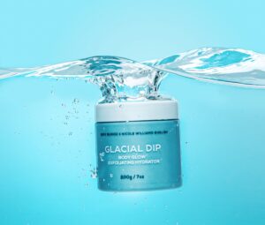 The Glacial Dip Set (including the Glacial Dip Body Glow Exfoliating Hydrator and Body Elixir) is now available for $99.99.