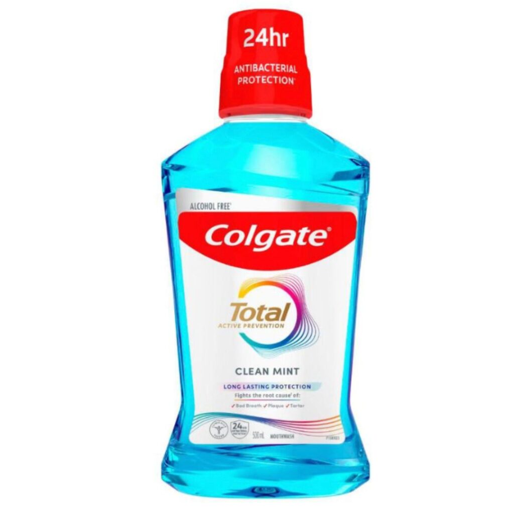 The Colgate Total Active Prevention Mouthwash provides 24-hour antibacterial protection. Designed for superior performance to help prevent many common oral care issues, the Colgate Total mouthwash fights the root cause of bad breath, plaque and tartar. Experience long lasting protection with the alcohol free, clinically tested formula with refreshing clean mint flavour. Used twice daily, mouthwash helps to improve oral hygiene by reducing bacteria that brushing alone may miss.