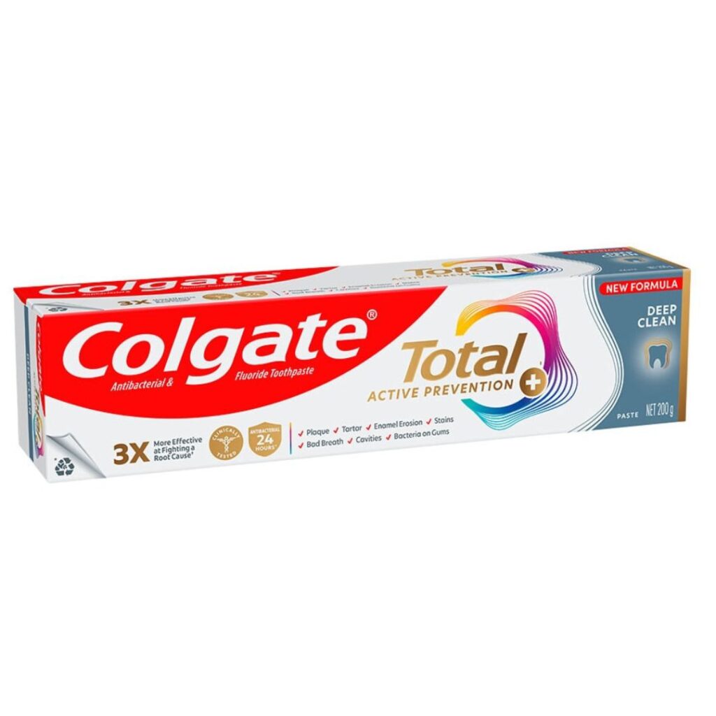 The Total Active Prevention Deep Clean Toothpaste is clinically tested to provide 24-hour antibacterial protection. It is formulated with a rich, dense foam and high-cleaning microparticles that helps prevent the formation of tartar along the gumline and on the teeth. It is three times more effective at fighting a root cause of tartar, cavities and bad breath. The Total toothpaste range is formulated to suit different preferences, from strong to low mint, and high to low foam and charcoal.