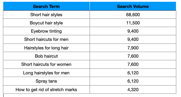Eyebrow grooming is also huge worldwide. In fact, ‘eyebrow threading’ receives 312k monthly searches, with more of these happening in the United States per capita than anywhere else.