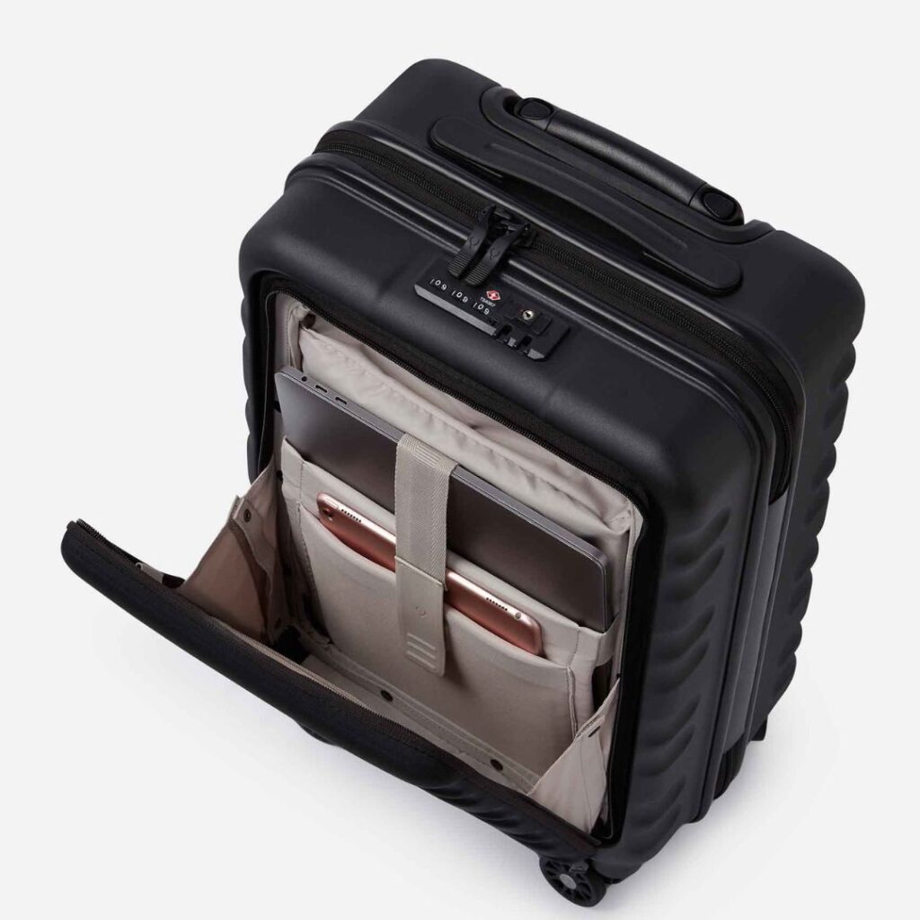 The Clifton with Pocket has all the features of our best-selling Clifton cases, with the added benefit of a chic but practical front pocket. The spacious front pocket allows for easy access to your travel essentials, with a padded slip pocket inside to secure a tablet, and another for a 15.6” laptop.