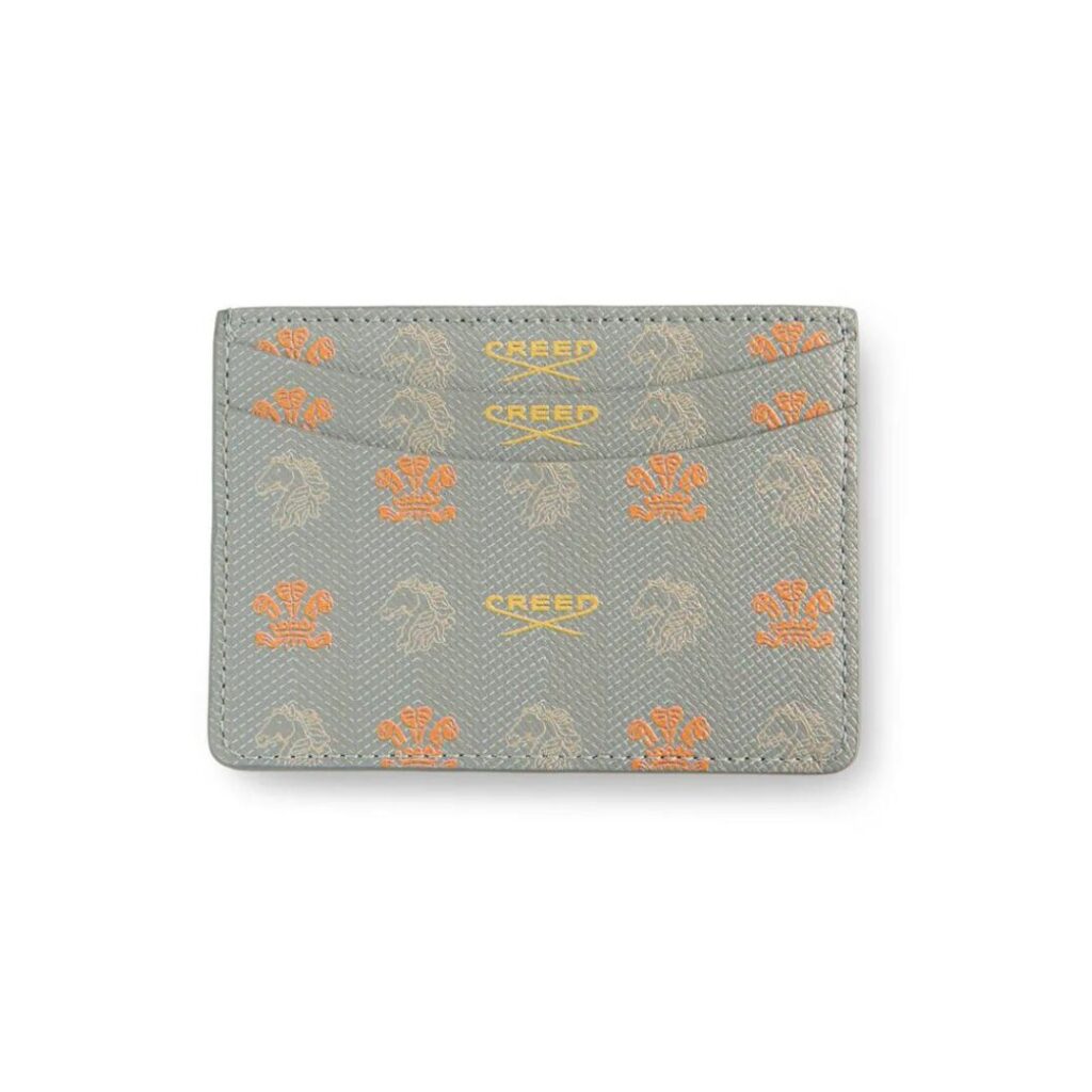 The House of Creed has created a range of luxury leather card holders, with an iconic step-and-repeat pattern in vibrant orange and yellow pantones on a slate grey background – a stylish design. Compact yet spacious, this card holder effortlessly organises your essential cards while making a statement of luxury with every use.